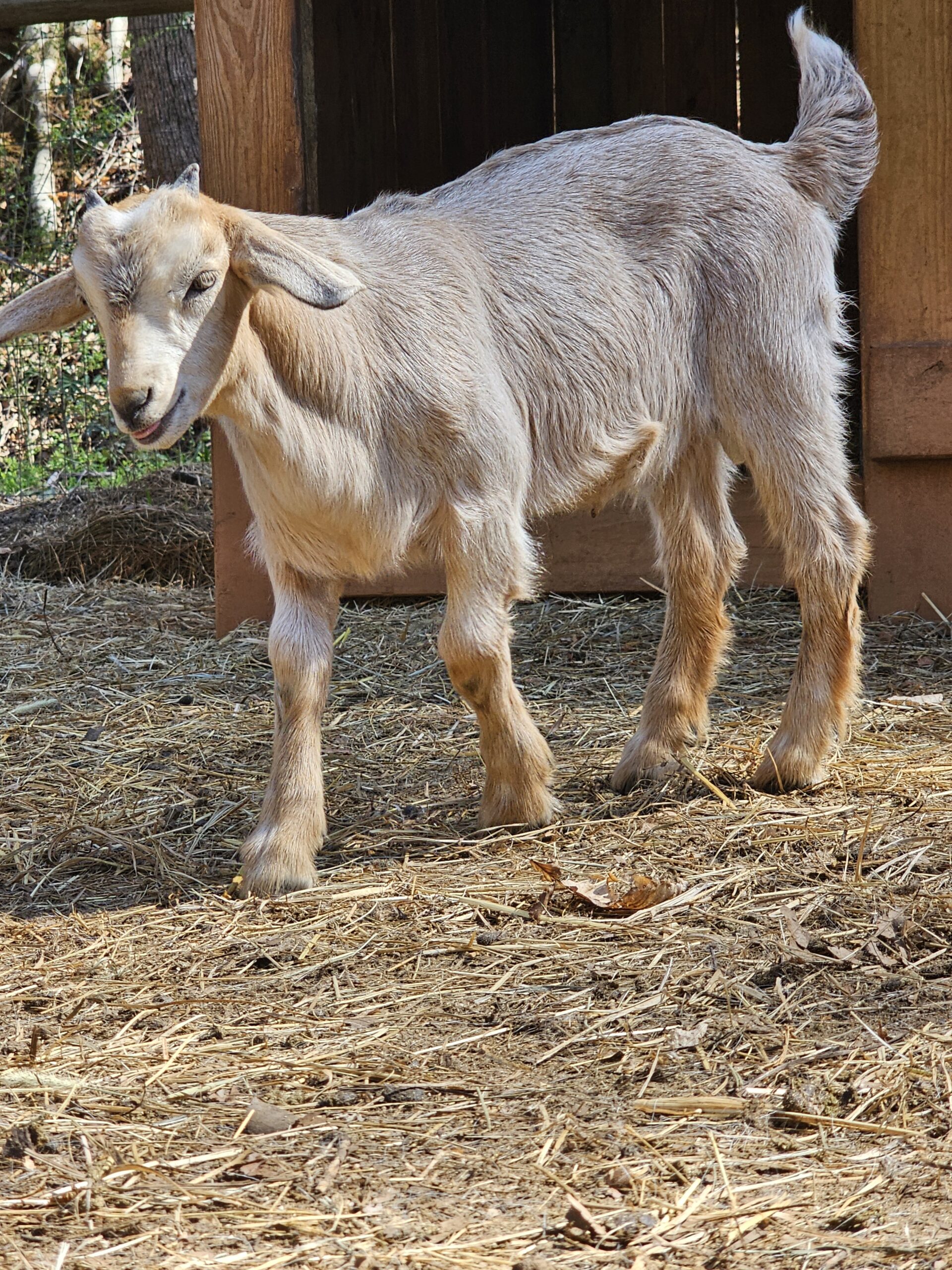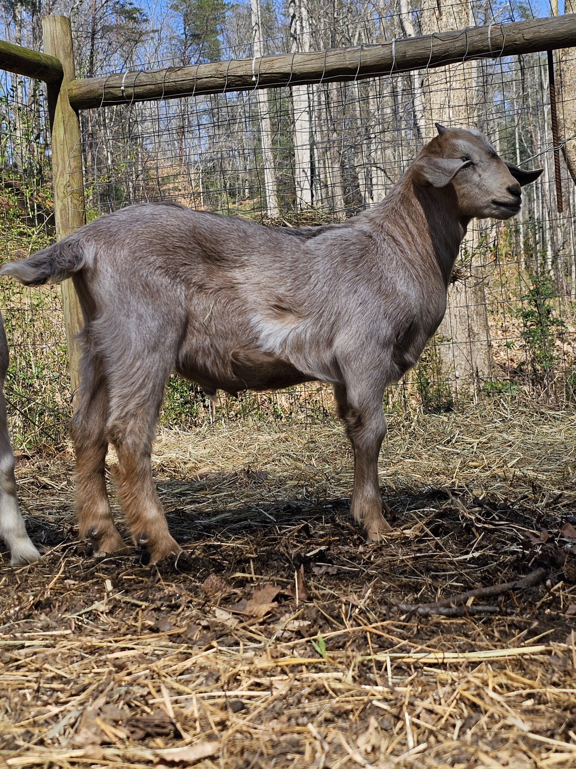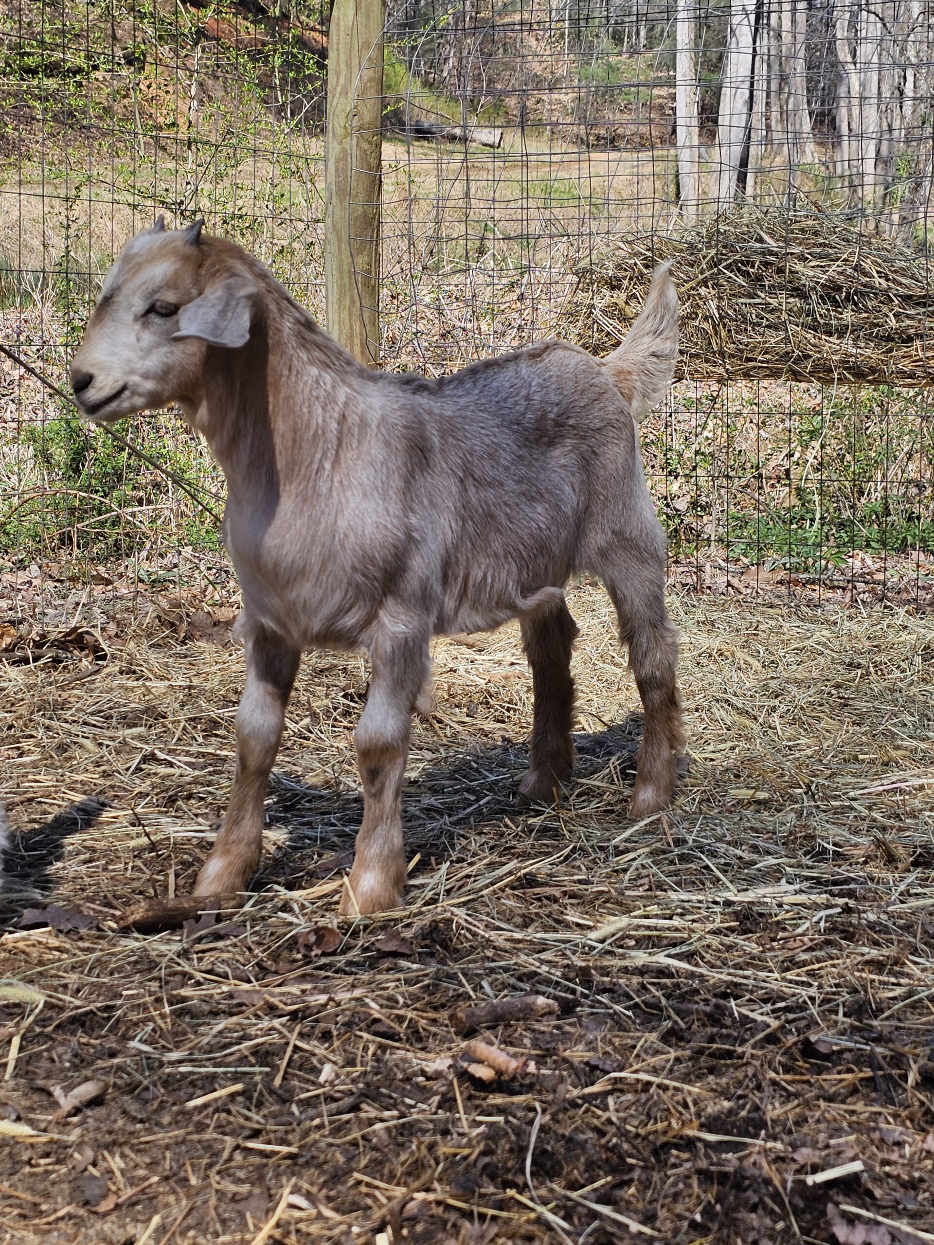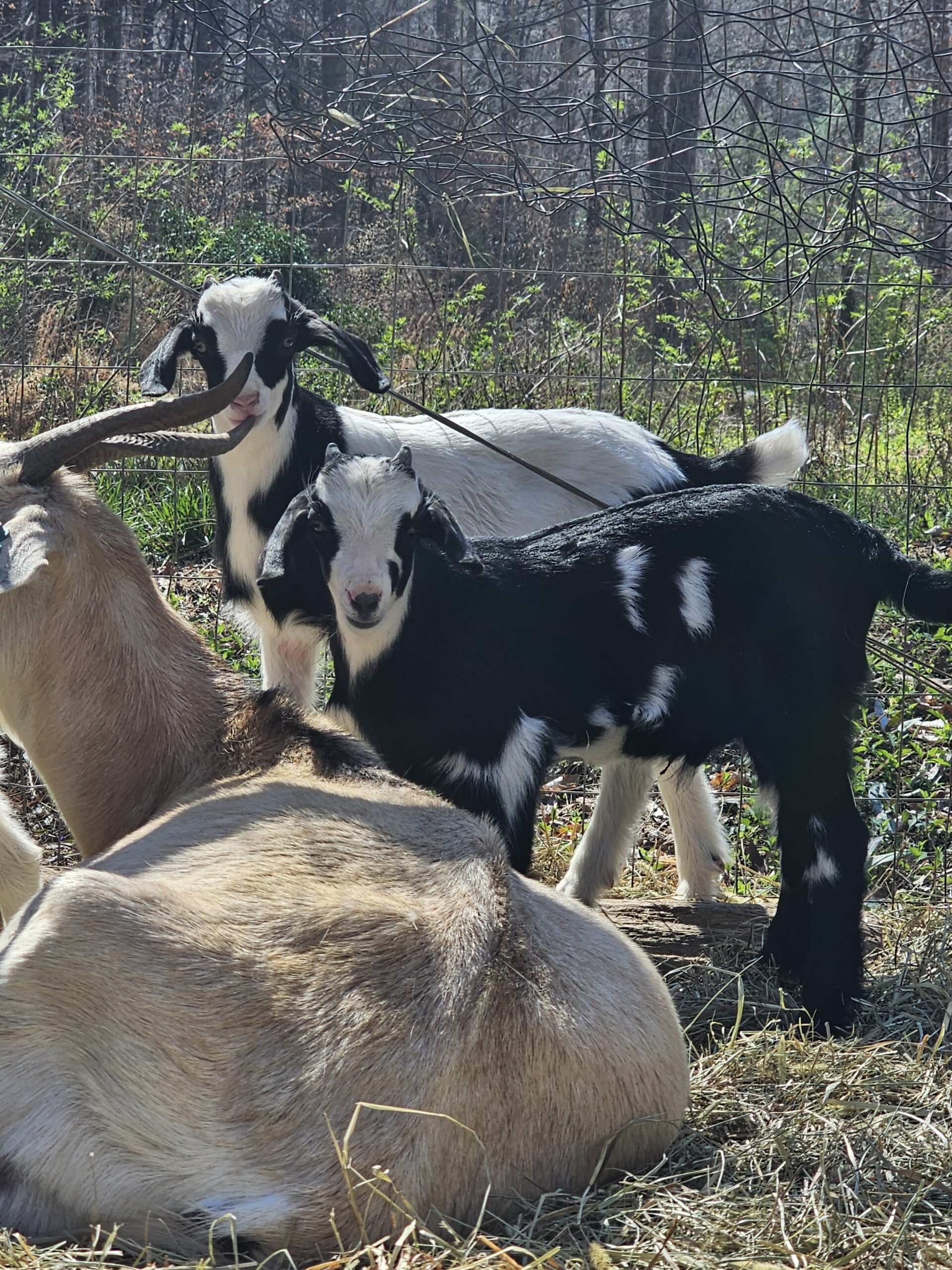 We deal exclusively with the Kiko breed of goats. This breed is gaining popularity in America due to its fast growth rate and the hands-off kidding. We breed specifically to capture these traits along with parasite resistance.
