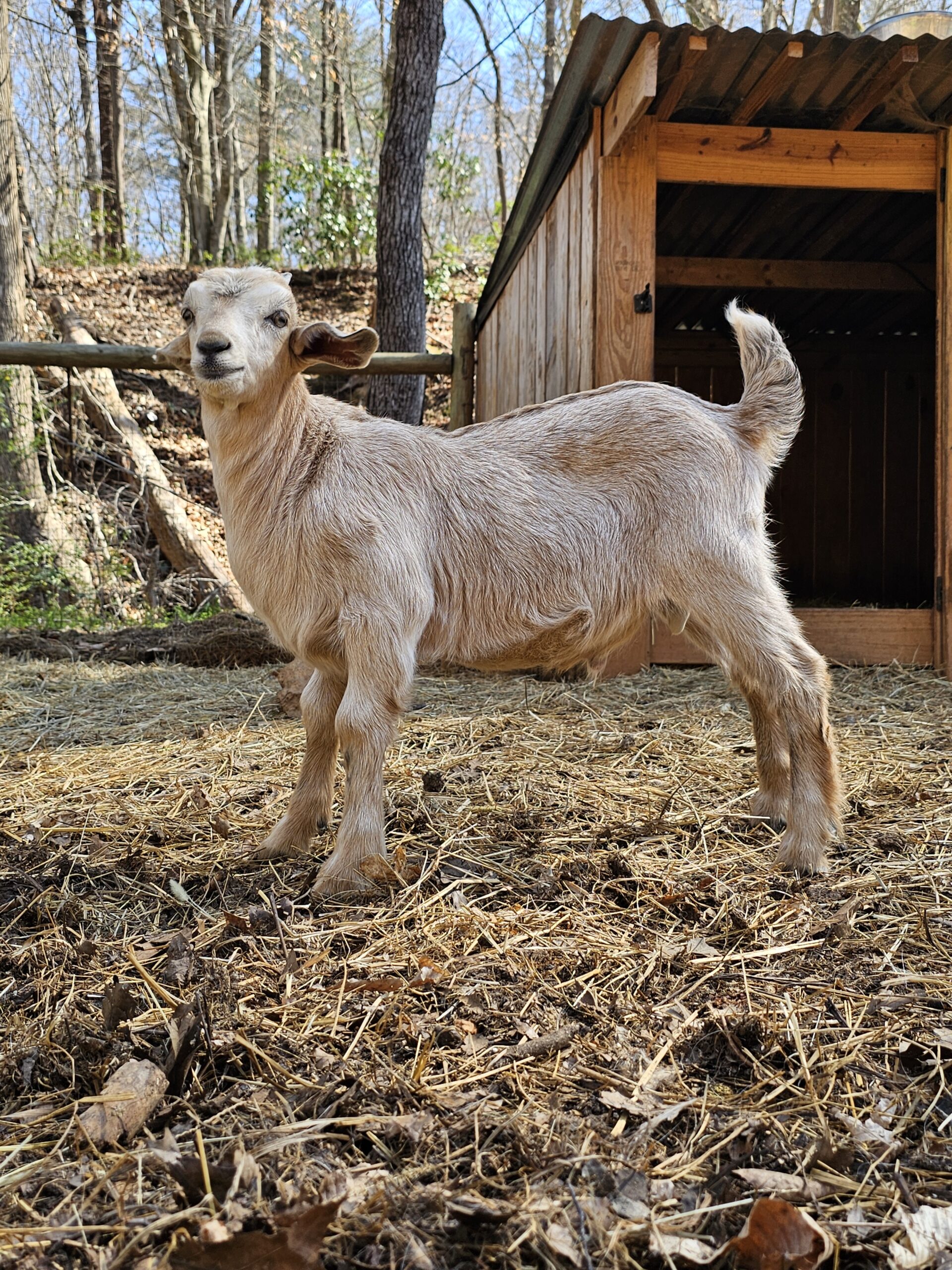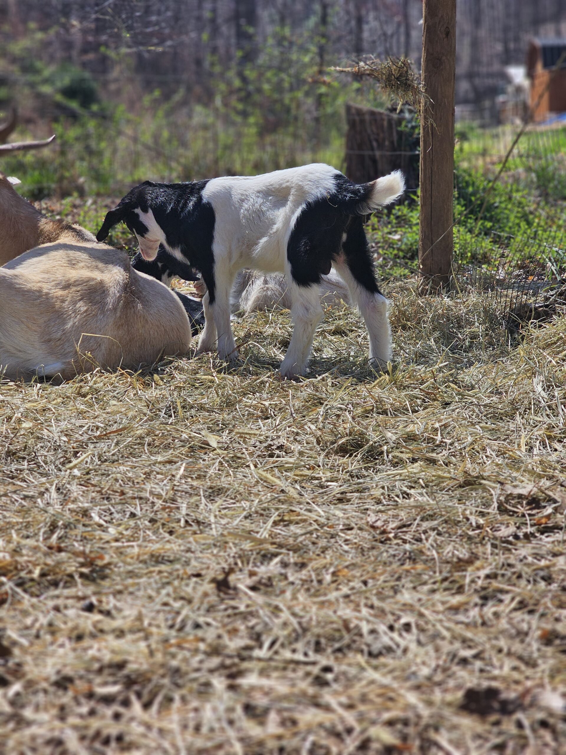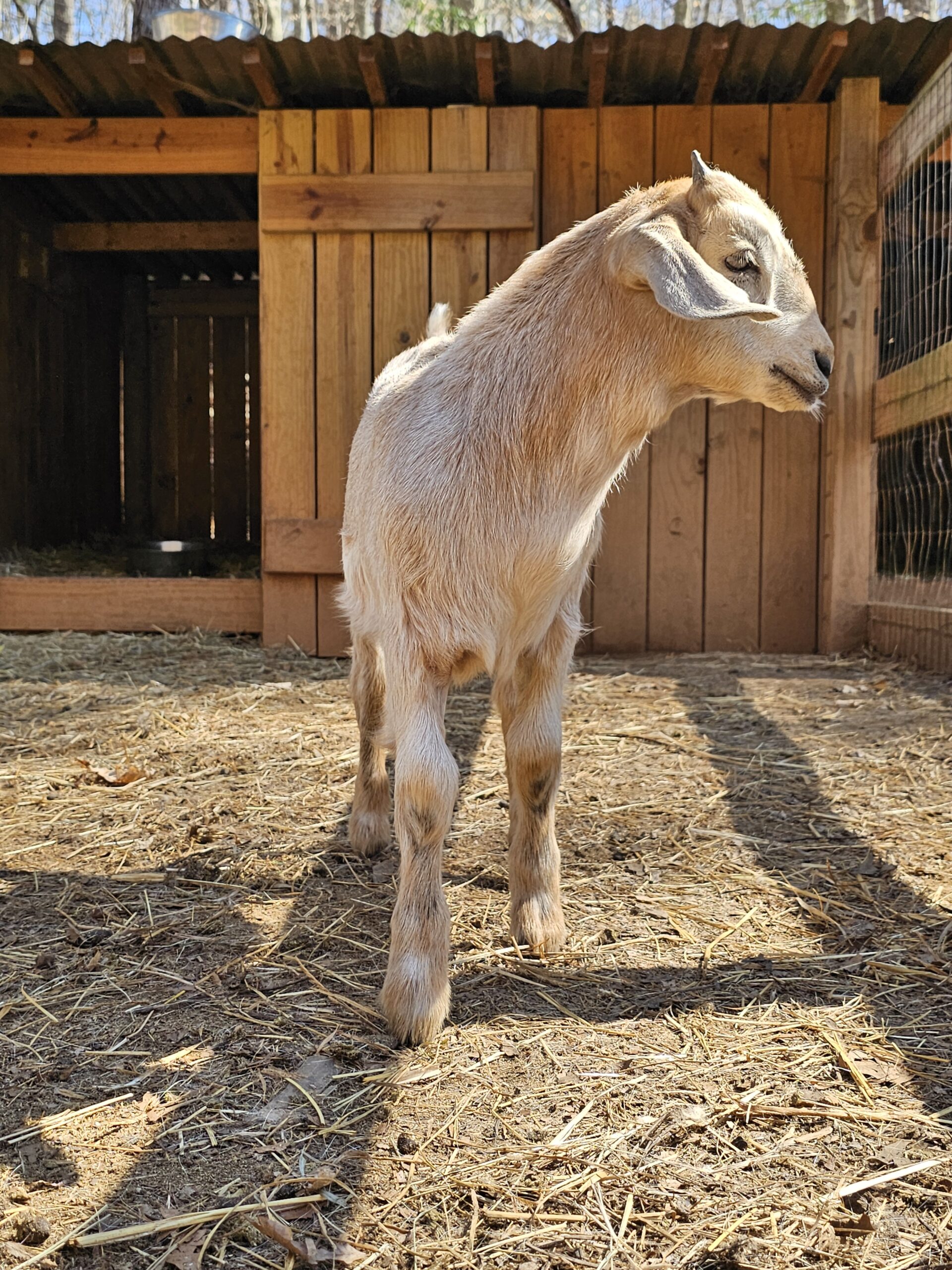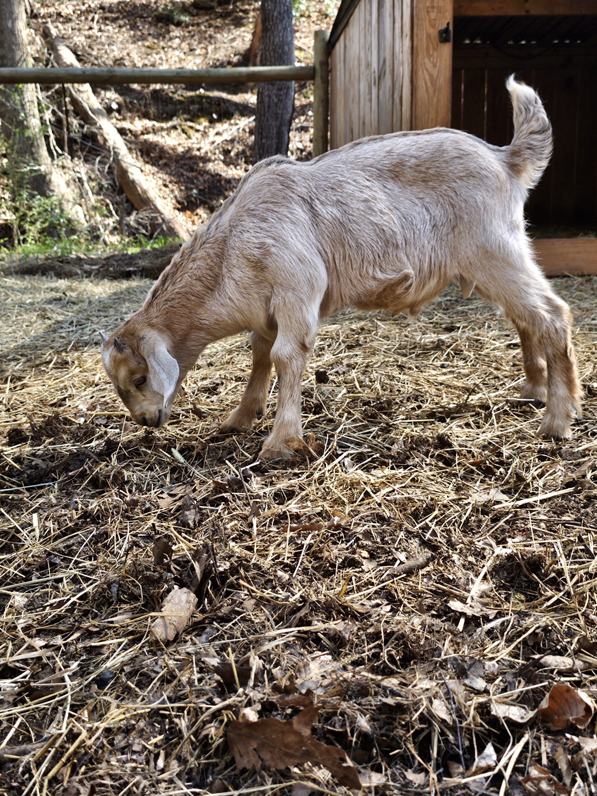 We deal exclusively with the Kiko breed of goats. This breed is gaining popularity in America due to its fast growth rate and the hands-off kidding. We breed specifically to capture these traits along with parasite resistance.