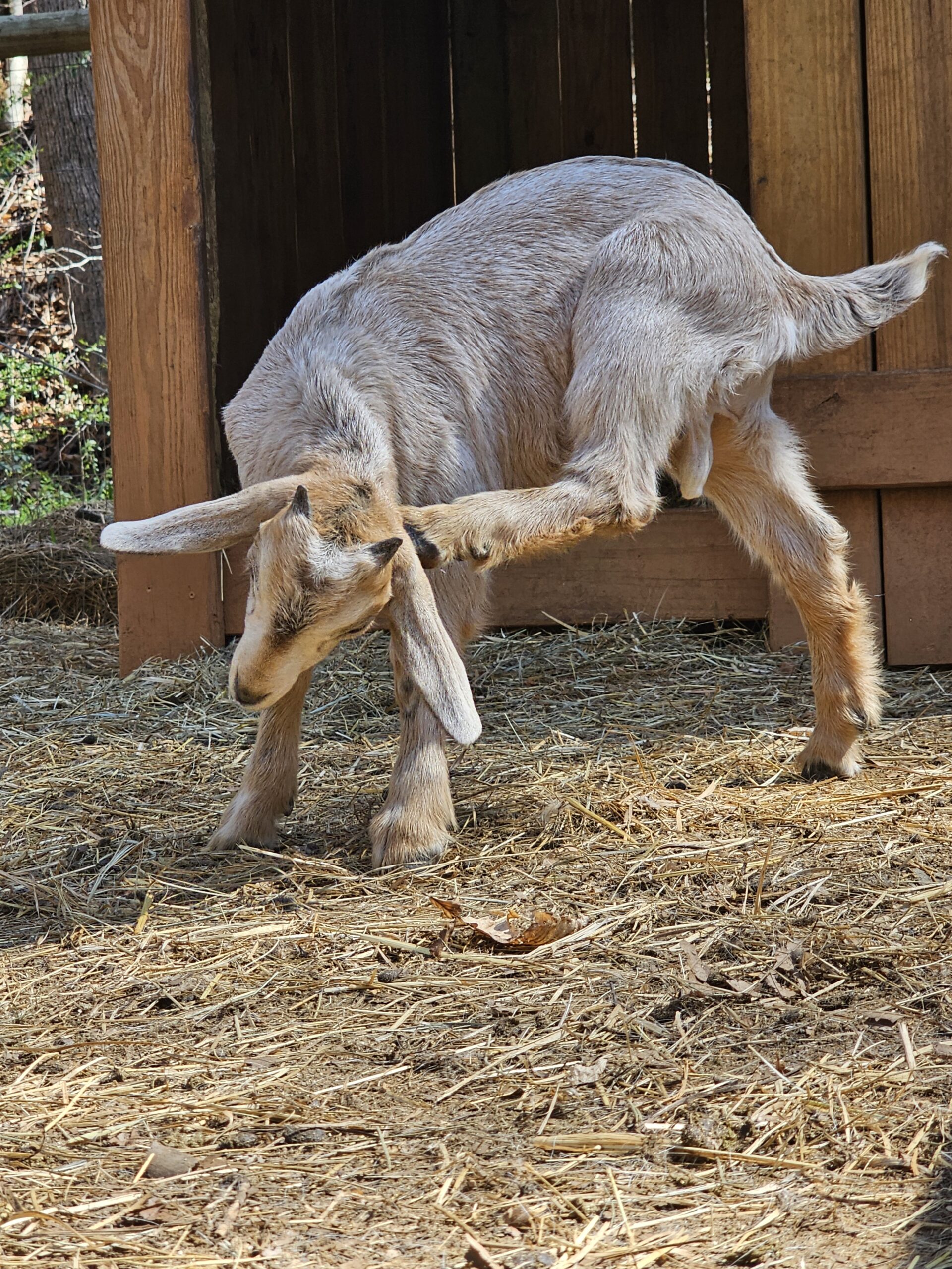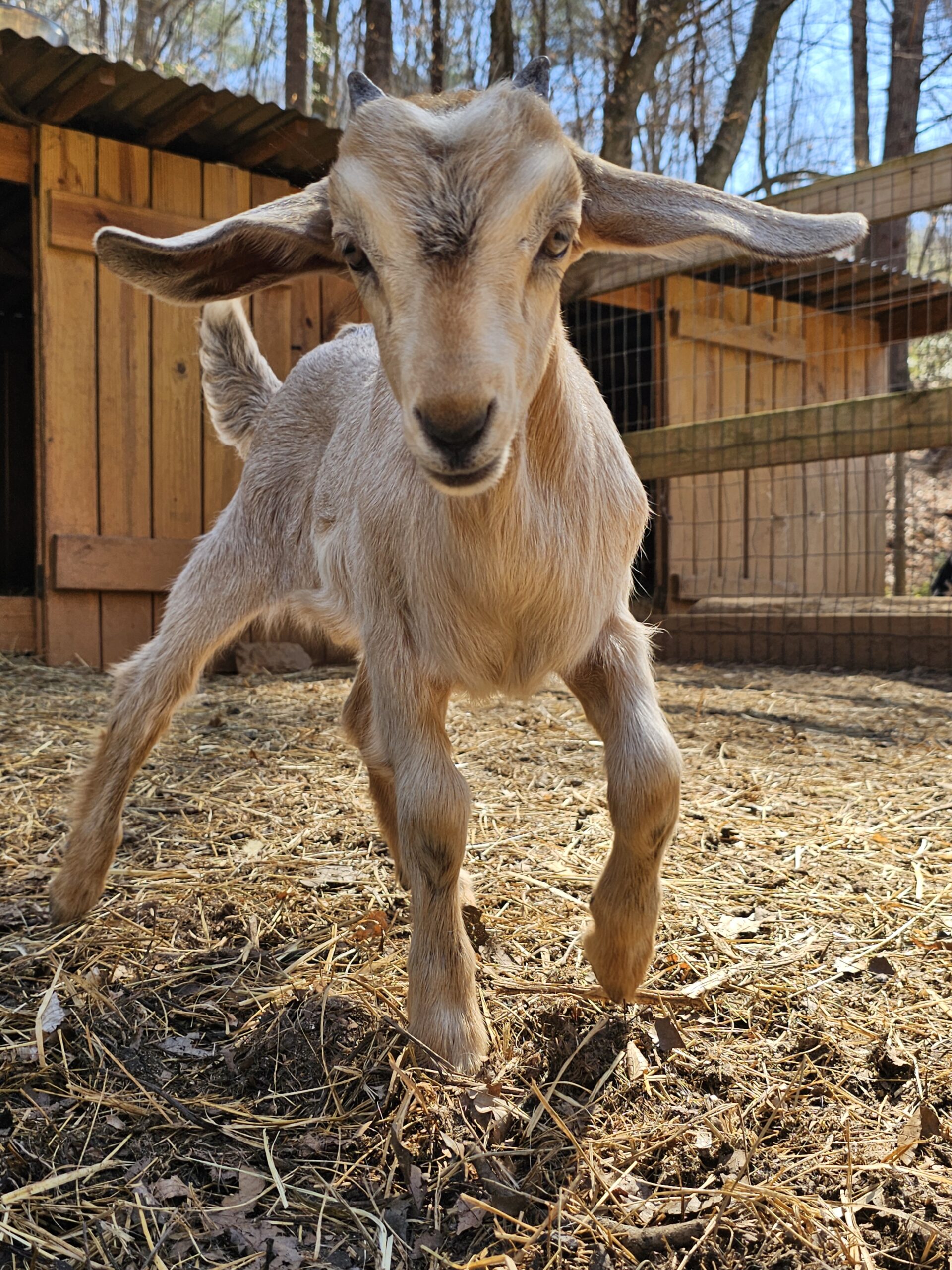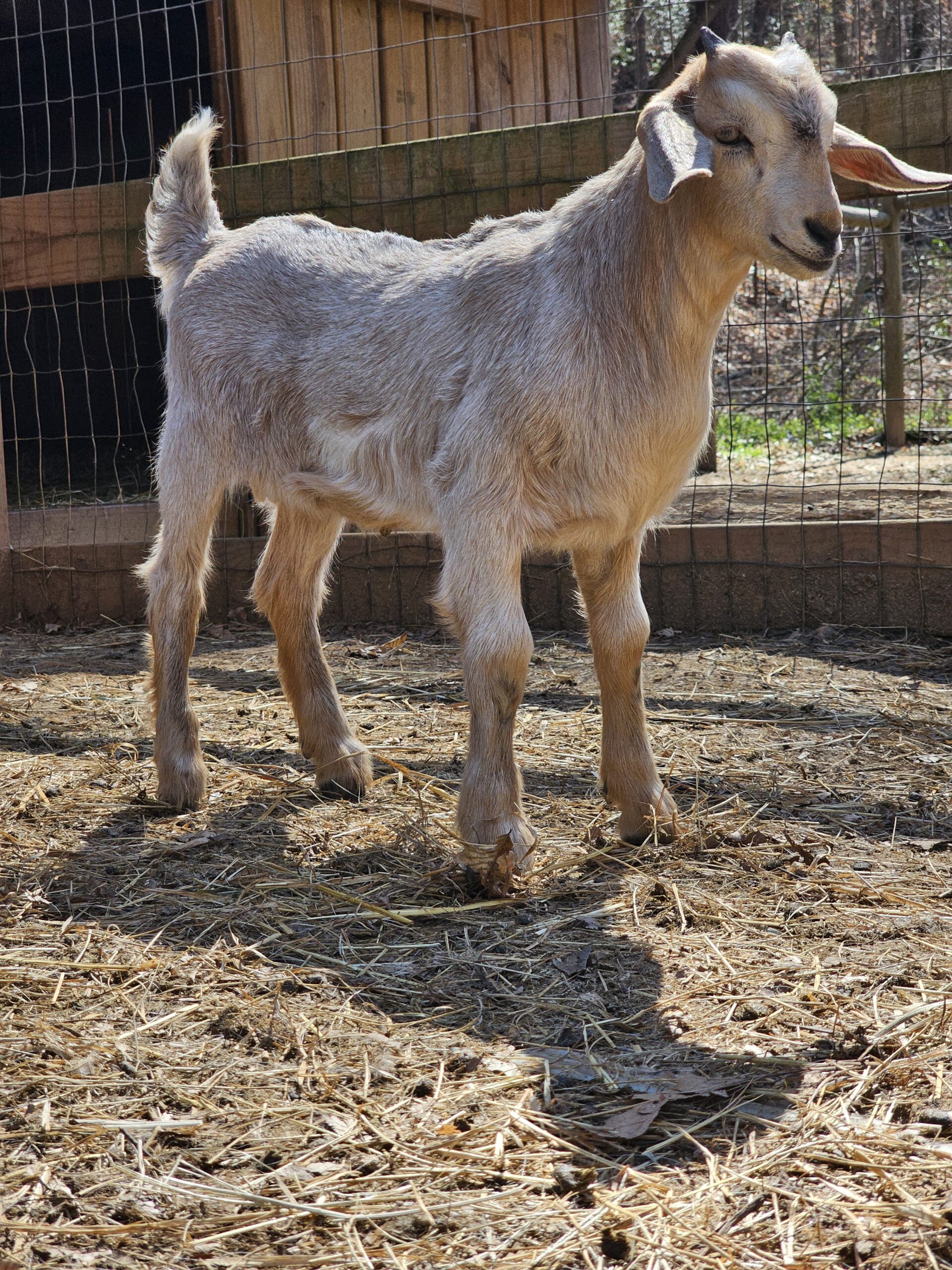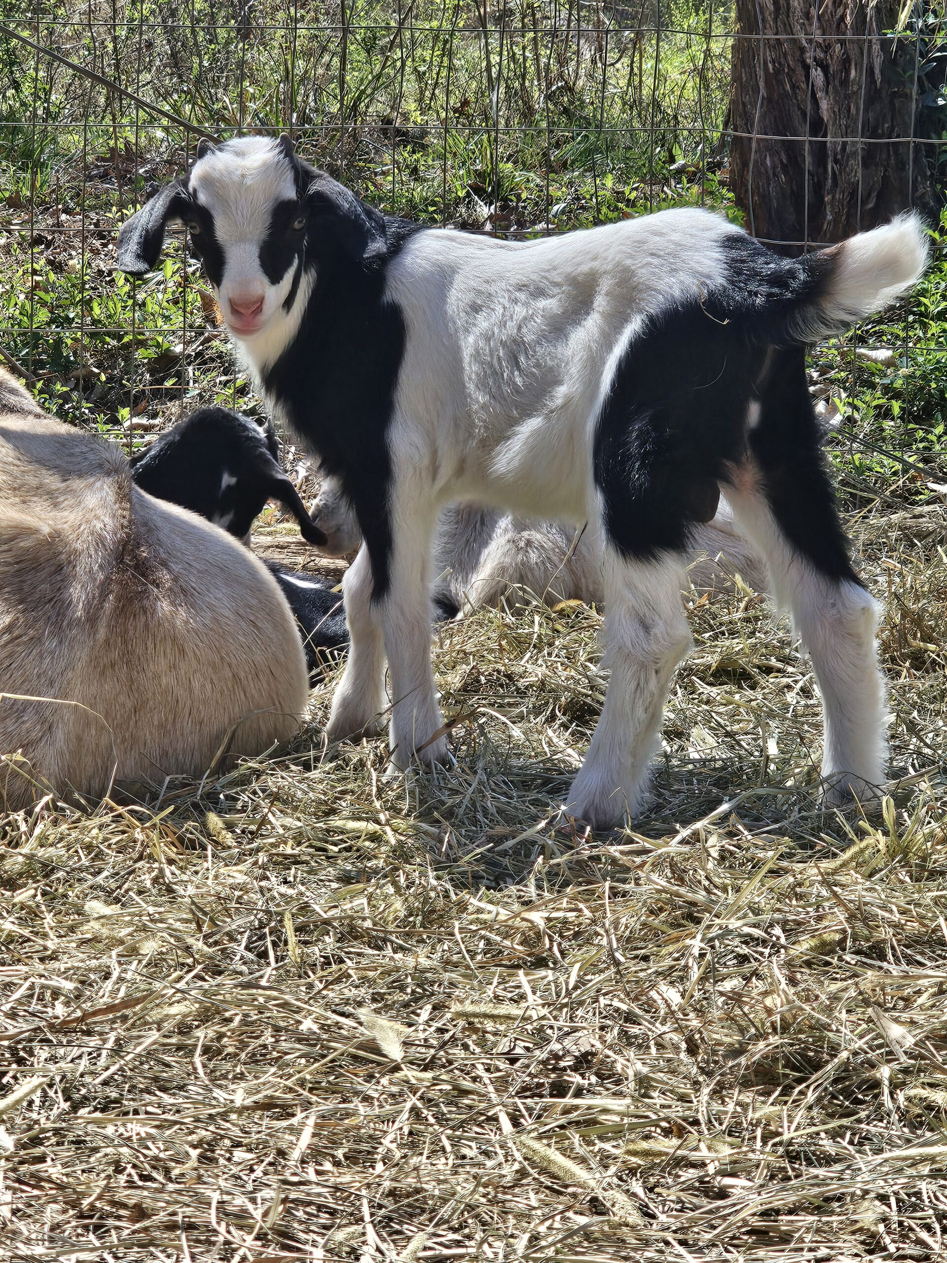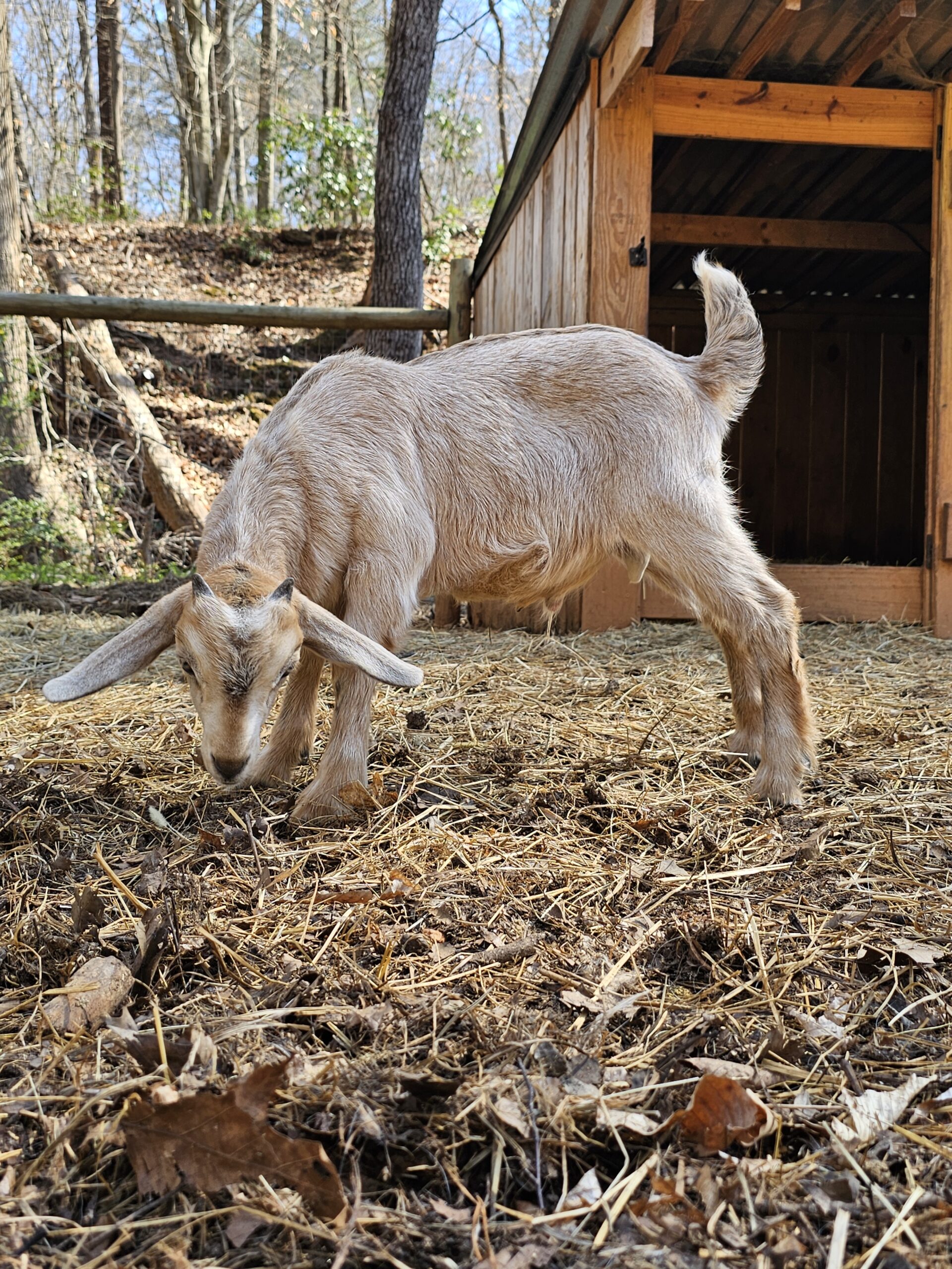 We deal exclusively with the Kiko breed of goats. This breed is gaining popularity in America due to its fast growth rate and the hands-off kidding. We breed specifically to capture these traits along with parasite resistance.