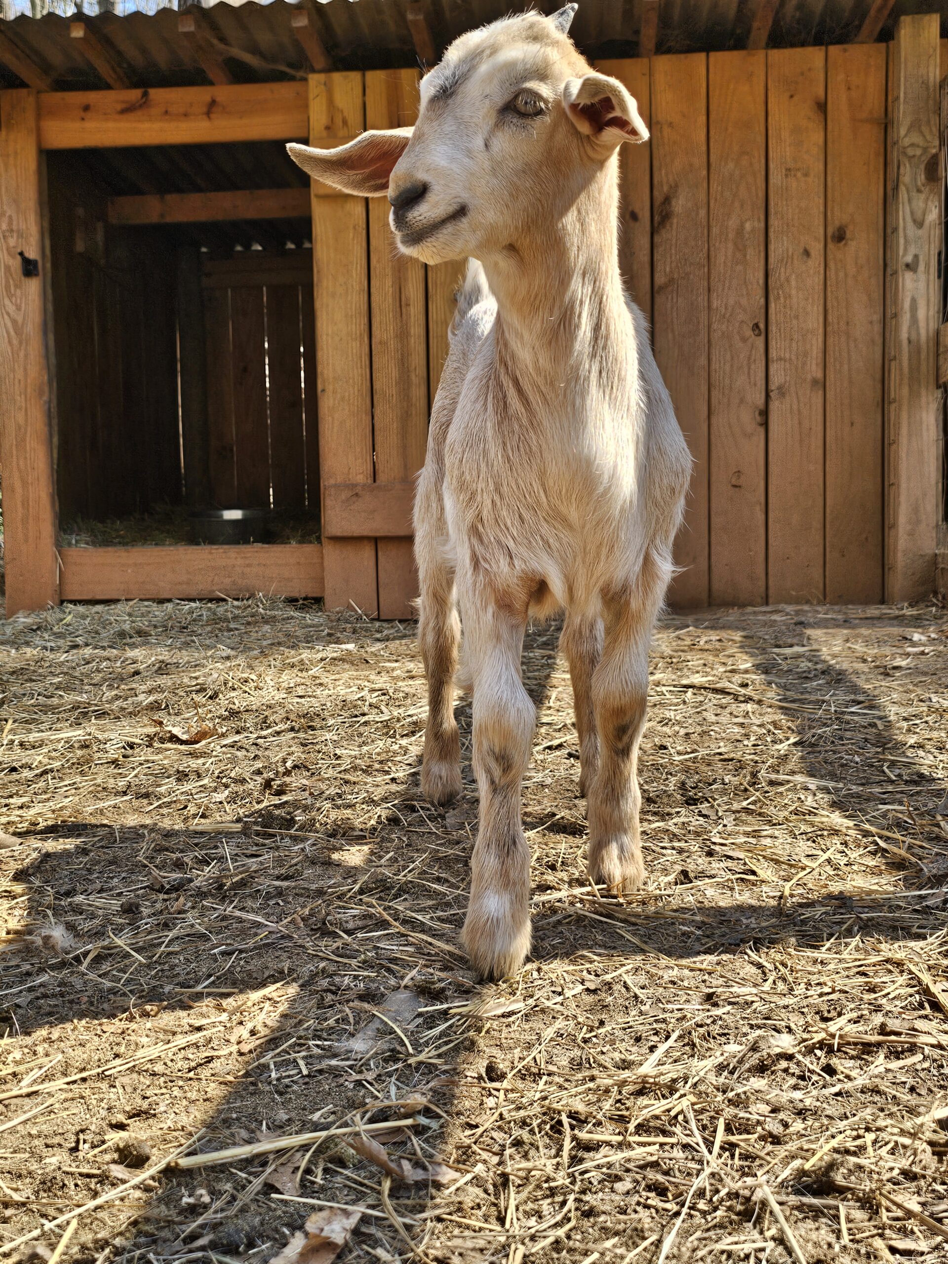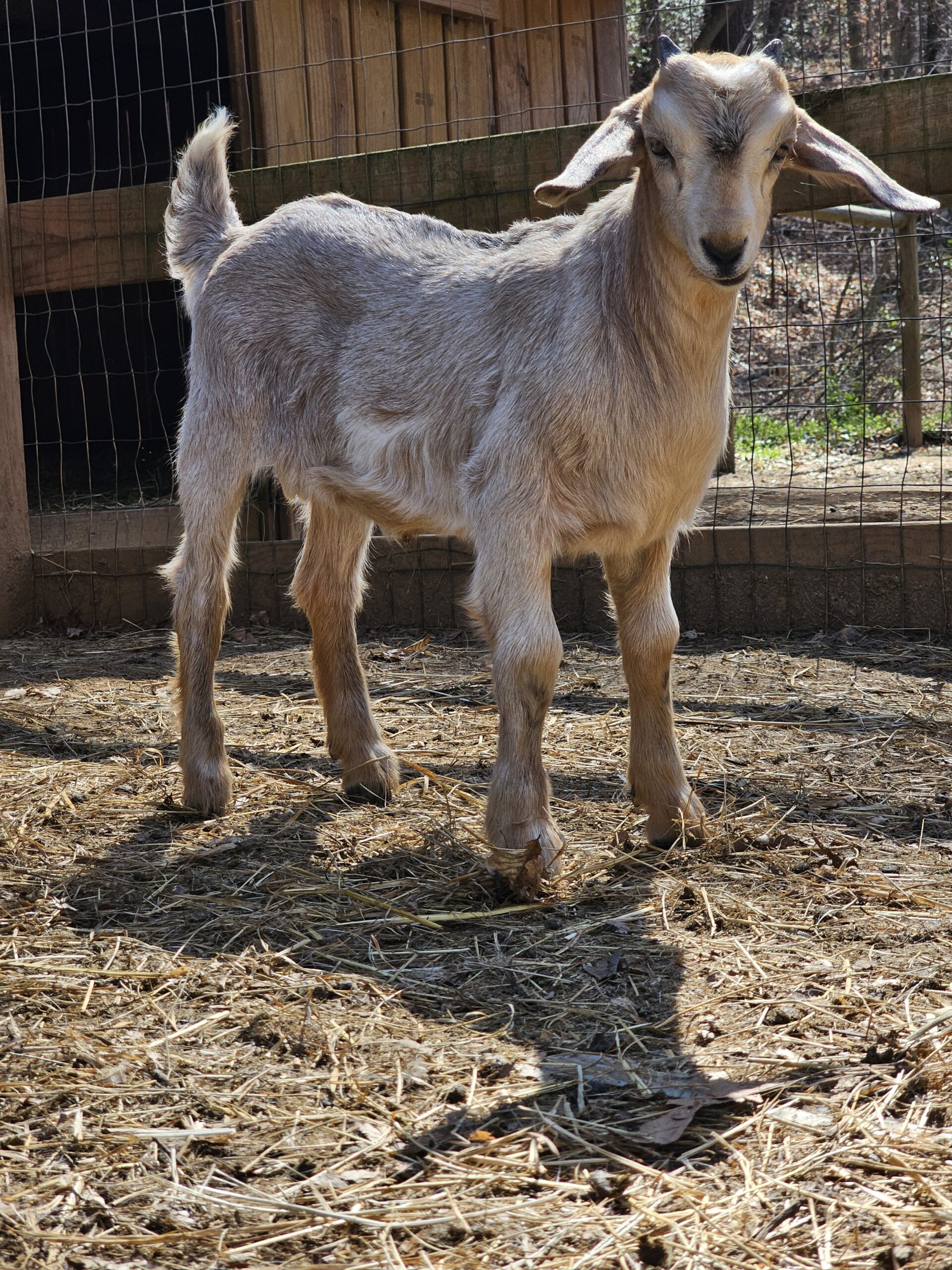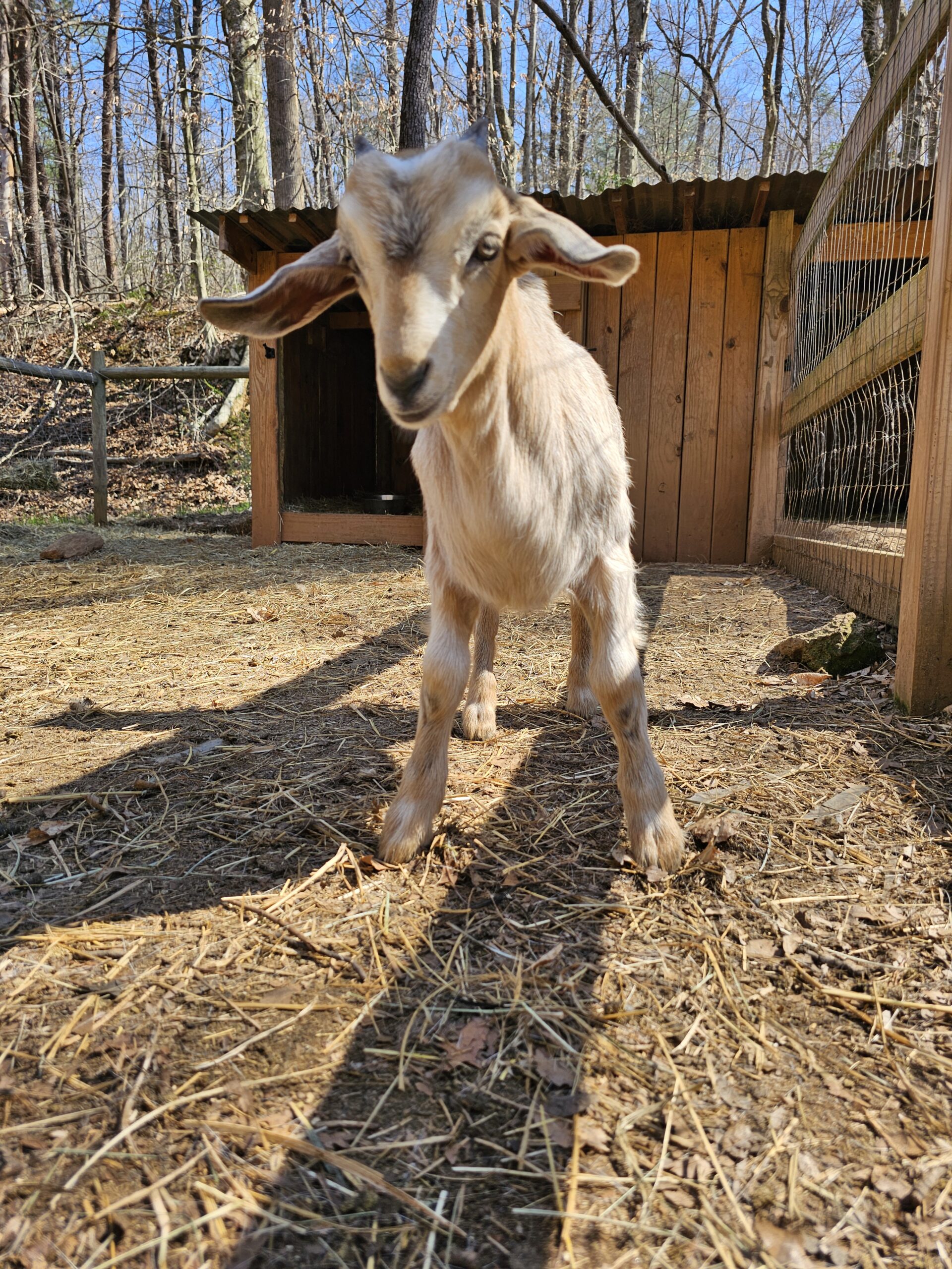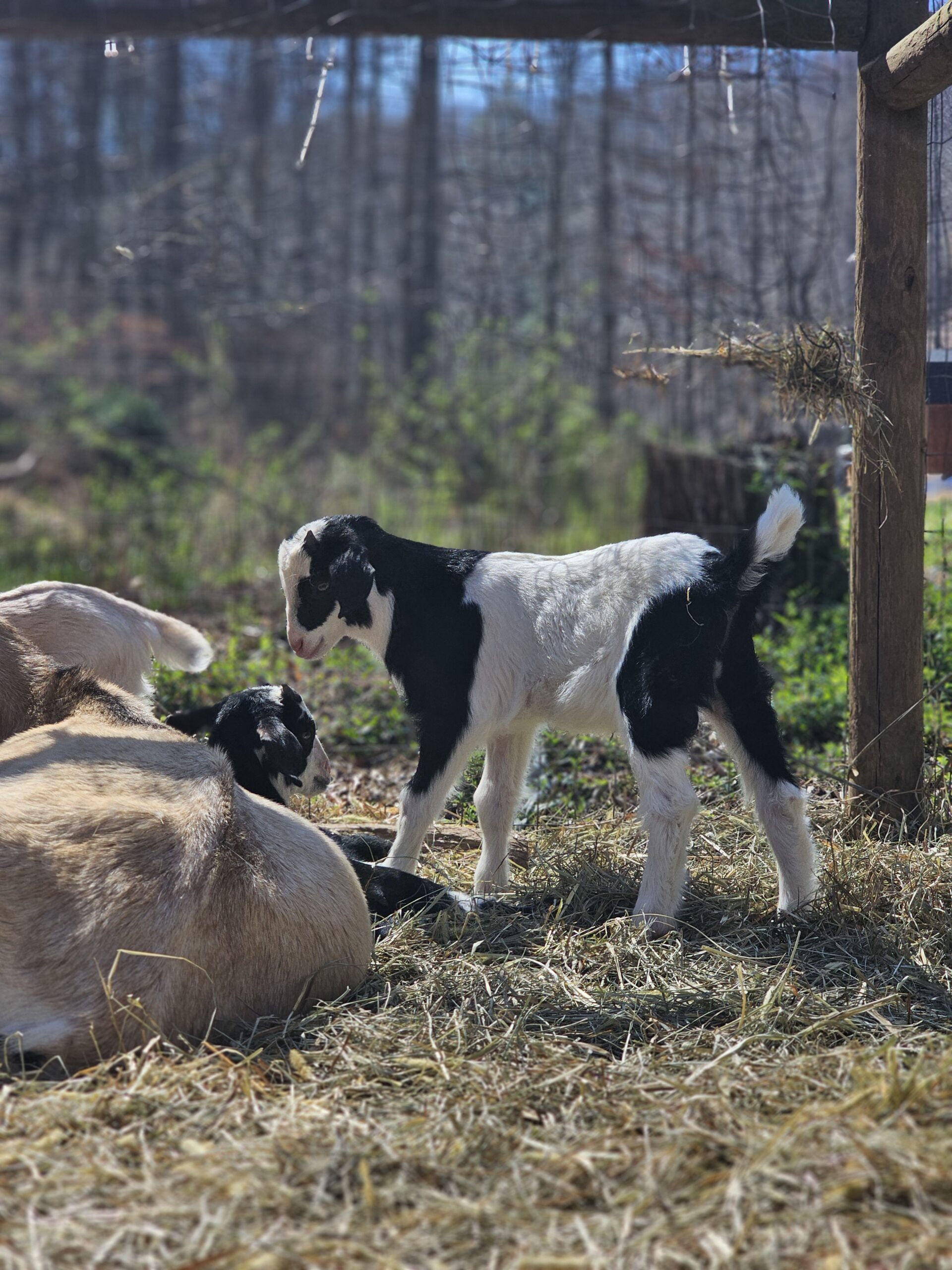 We deal exclusively with the Kiko breed of goats. This breed is gaining popularity in America due to its fast growth rate and the hands-off kidding. We breed specifically to capture these traits along with parasite resistance.
